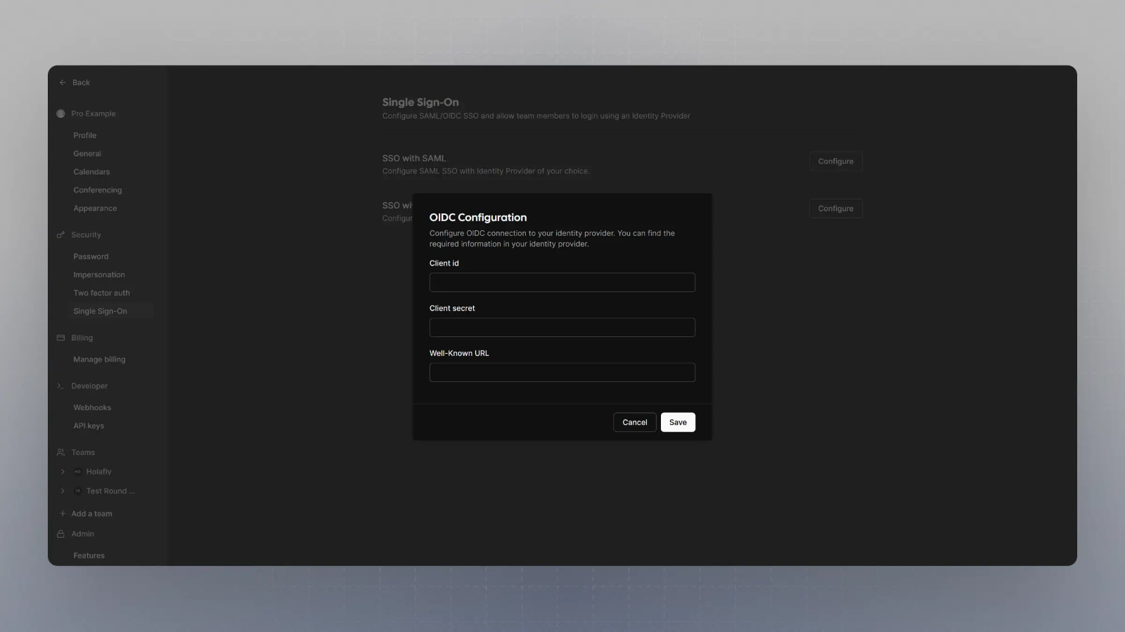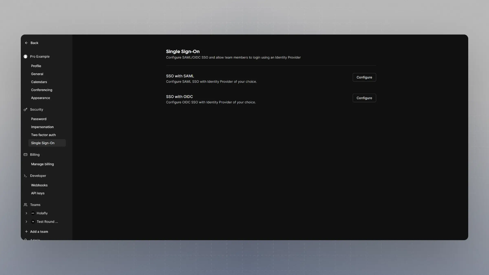 dev-123456.okta.com, your well known URL would be - Now spin up cal.com on your server and login with the Admin user (the email ID of which was provided in step 2 for SAML_ADMINS environment variable).